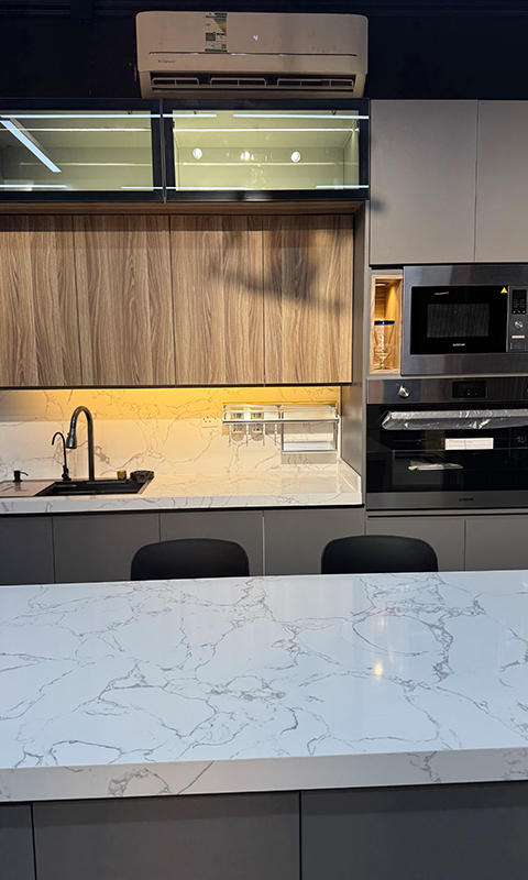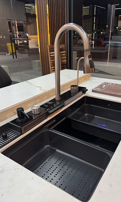 يتم تنفيذ المطبخ بدقة في ورشاتنا باستخدام أحدث التقنيات، مع فحص الجودة لضمان أعلى المعايير.